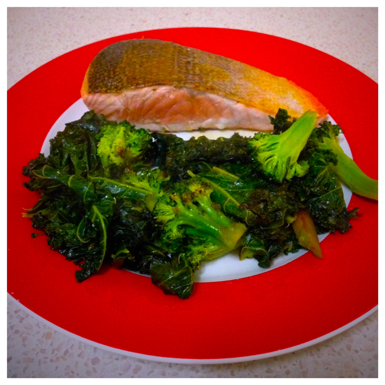 - Meal 3 – pan-fried salmon fillet with kale and broccoli