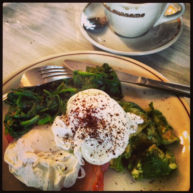 We breakfasted at local cafe Julio, where I enjoyed 2x excellent long blacks and breakfast of poached eggs, ham, avocado and spinach.